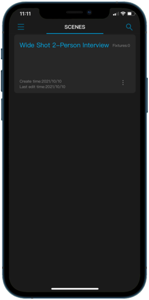 When you first launch the NANLINK app, you are presented with a clean interface. To get things going, tap on the hamburger menu in the top left corner and then select + New Scene. Next, give the scene a name, such as "Wide Shot 2-Person Interview" and tap Create.